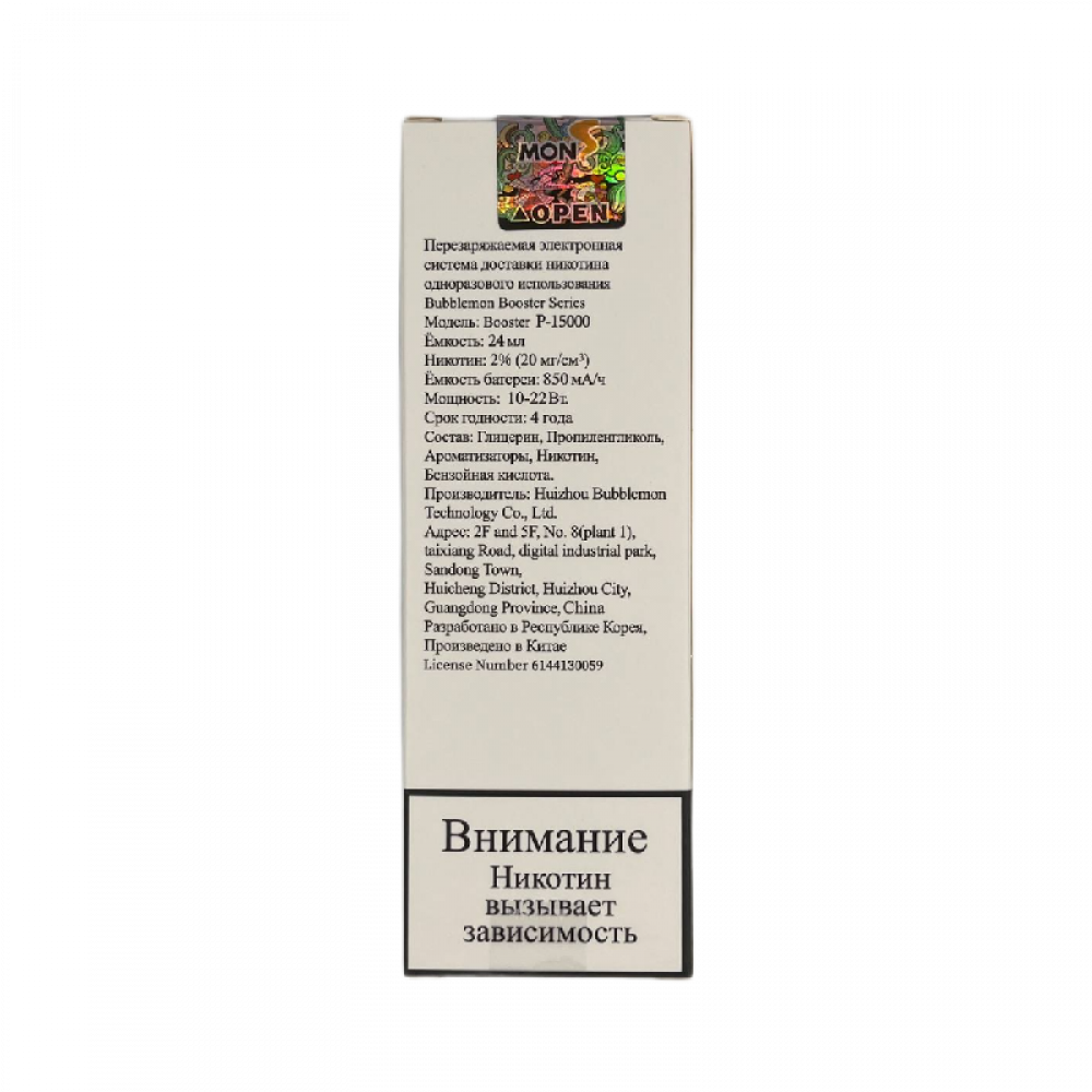 Технические характеристики Bubble Mon Booster P-15000 Малина Лимон