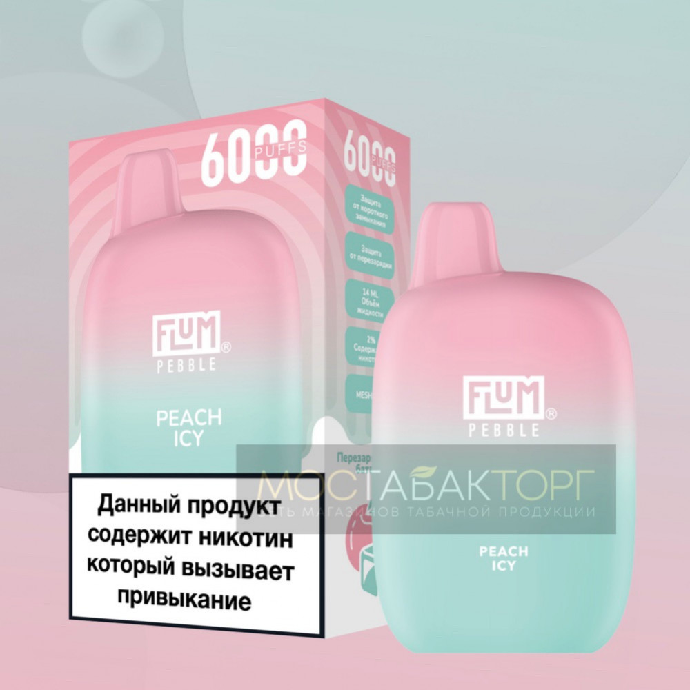 Электронная сигарета FLUM Pebble Персик Лёд на 6000 затяжек