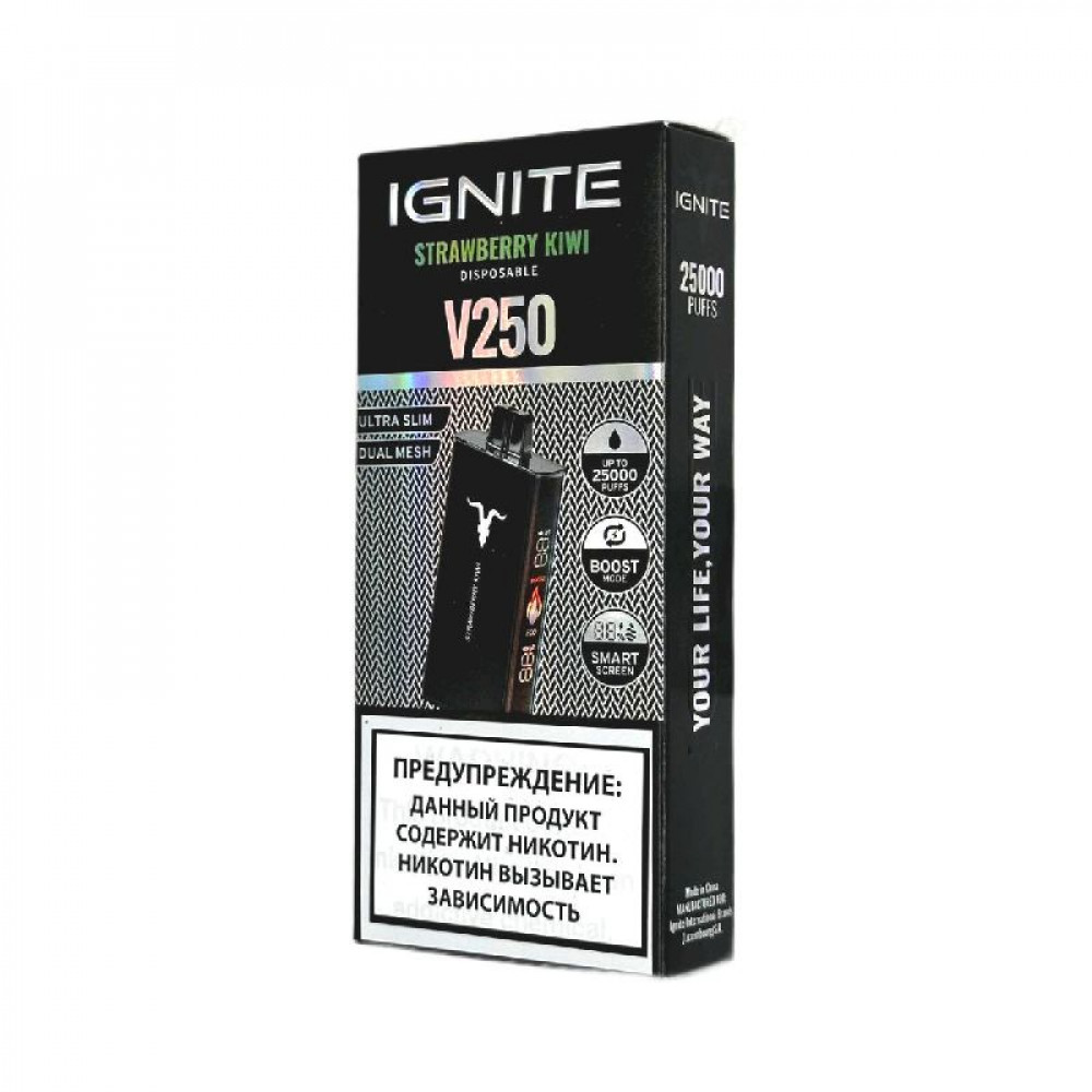 Электронная сигарета Ignite V250 Black 25000 - Strawberry Kiwi (Клубника киви) - купить в Заинске